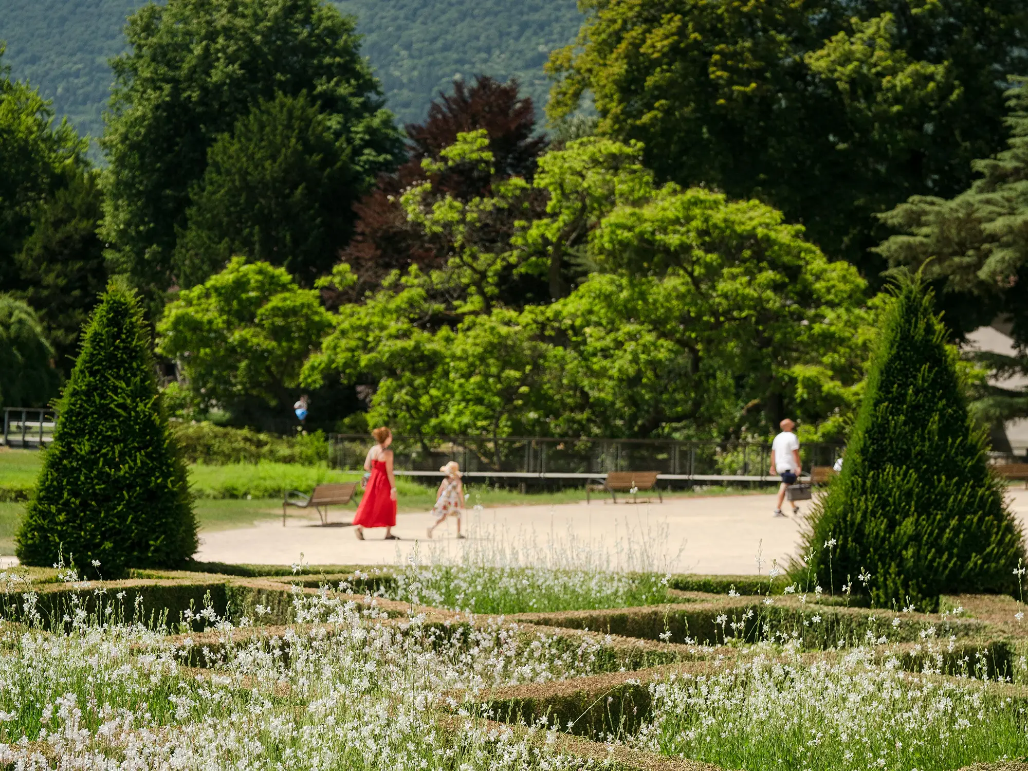 Élimination complète des mauvaises herbes et entretien des massifs fleuris.